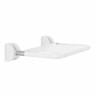 Материалом для сидения и спинки служит прочный пластик. Он не деформируется и не трескается. Модель имеет откидное сидение, а также специальные ремни безопасности. Они также выполнены материалов, не вызывающих аллергии или телесного дискомфорта. Модель отличается достаточно компактными размерами, что позволит использовать его даже там, где нужно рационально использовать пространство. Кресло крепится к стене. Его легко чистить и мыть благодаря гладкой поверхности, отсутствию лишних деталей. Также модель можно обрабатывать дезинфицирующими средствами.
