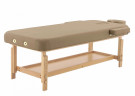 Рама модели из натурального бука выдерживает нагрузку до 200 кг. Гарантия на нее действует целых 3 года. Под ложем располагается широкая полка для разнообразных аксессуаров, полотенец и т.д., изготовленная из того же материала, что и рама. А на одном его краю находится дополнительная секция с вырезом для лица.